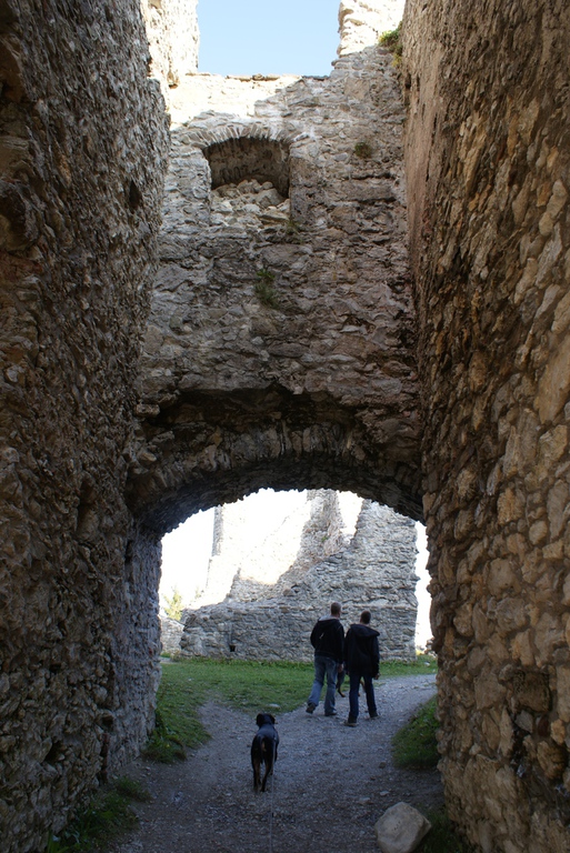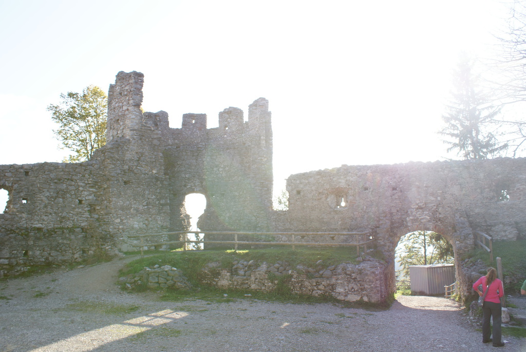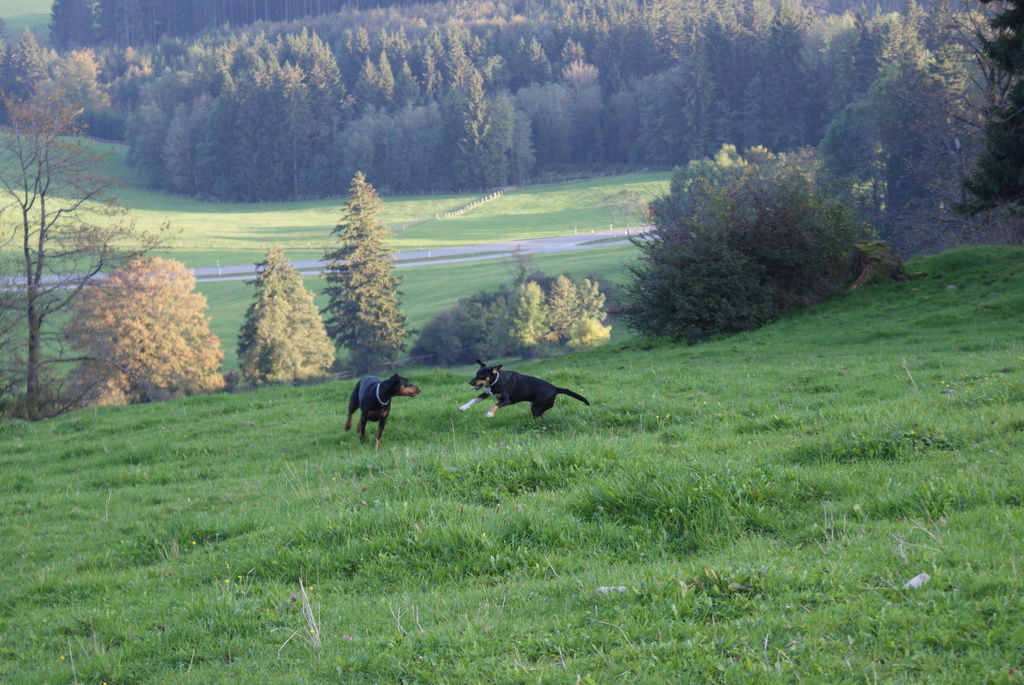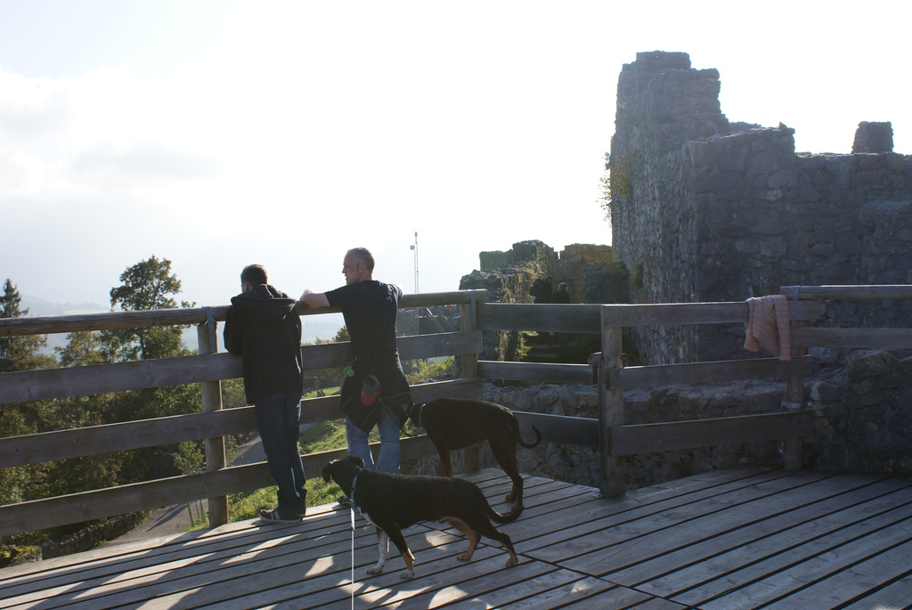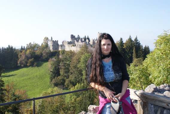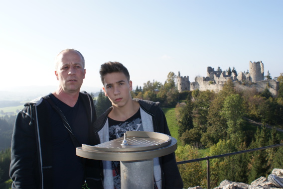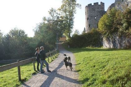 Am ersten Tag aber sind wir erst einmal nach Eisenberg bei Füssen gefahren und haben eine Wanderung zur Burg Eisenberg und Burgruine Hohenfreyberg gemacht. Dabei kamen wir an der Schloßbergalm Zell vorbei. Dort war jede Menge los und plötzlich hörten wir, wie jemand Frauchens Namen rief. Zuerst dachten wir uns nichts dabei, es wurde ja sicherlich eine andere Tanja gemeint. Doch das Rufen wurde lauter und kam näher und so schaute mein Frauchen sich doch suchend um. Man mag es kaum glauben, aber es war die Cousine von Tanja´s Mutter, die mit Mann, Nichte und deren Mann auf der Alm waren und uns zufällig gesehen hatten. Das witzige daran war, das sie erst durch mich auf mein Frauchen aufmerksam wurden. Ich steche einfach überall heraus und bin jeden Blick wert.