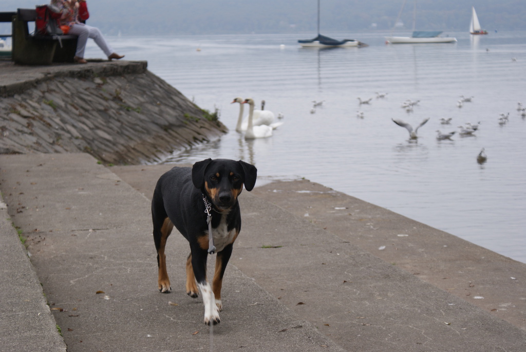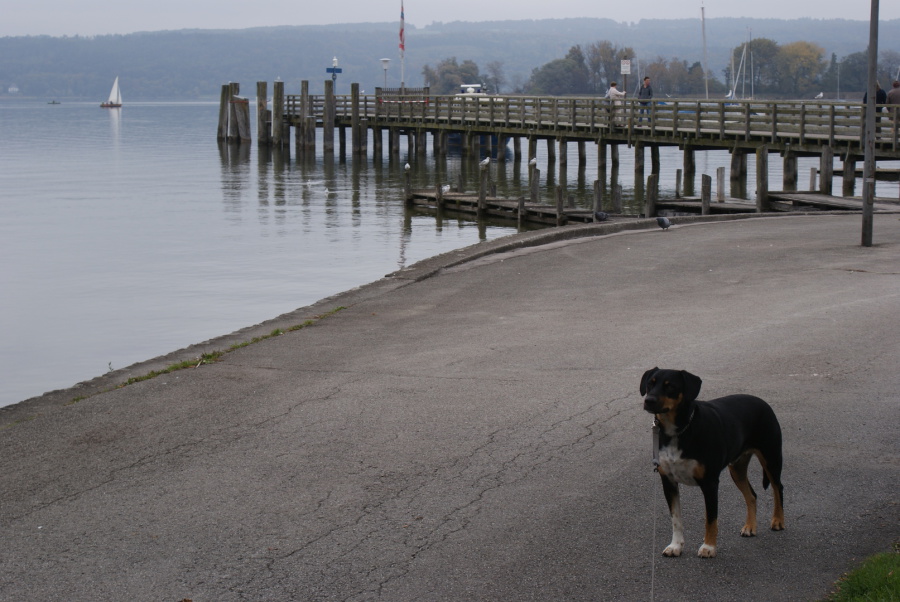 Am nächsten Tag gingen dann beide Herrchen in den Vergnügungspark. Unser Frauchen schnappte uns und fuhr mit uns zum Ammersee. Das Wetter war leider nicht mehr ganz so schön, wie am Vortrag, aber für den Ausflug war es ganz ok.