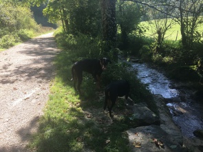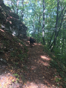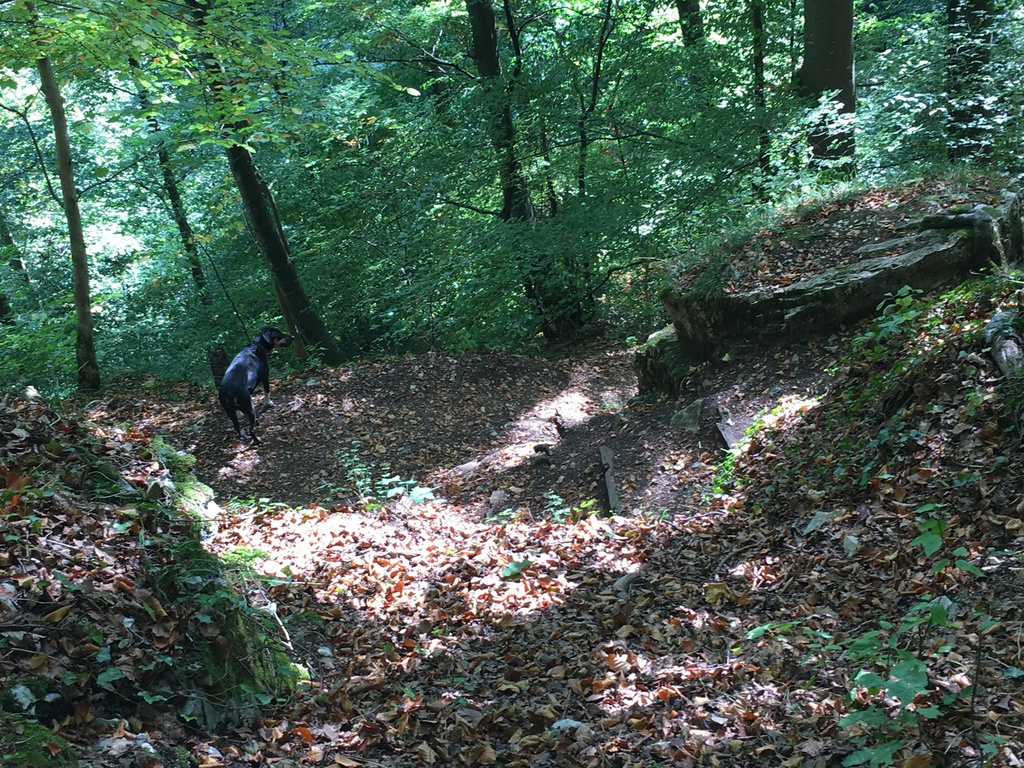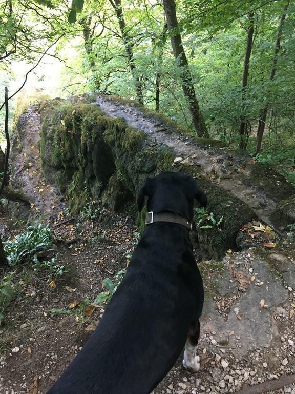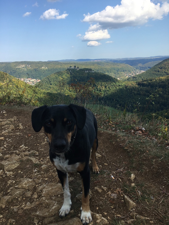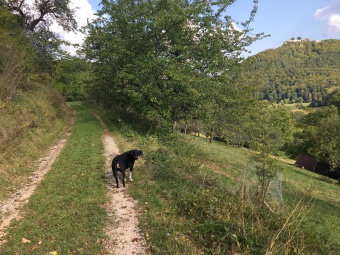 Hier war so gut wie niemand unterwegs und wir konnten über die Wiesen flitzen und schnüffeln, während Herrchen und Frauchen die schöne Aussicht vom angrenzenden Rutschenfelsen ins Maisental genossen.