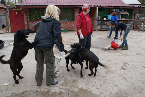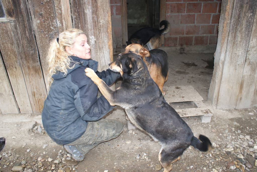 Nach einer sehr gut verlaufenden Anreise kamen sie am Nachmittag bei schönstem Wetter im Asyl an. Sie wurden dort herzlichst von der Leiterin Goga und ihrem Team empfangen. Als erstes luden wir die Spenden aus, dann durften wir schon einen ersten Blick in den vorderen Bereich des Asyls werfen. Doch die Hunde waren durch ihre Anwesenhein so aufgeregt, das der Malinois Tarik (wurde vom Tierheim Burg über-nommen) sogar versuchte, über den hohen Zaun des Zwingers zu den Besucherinnen zu klettern.