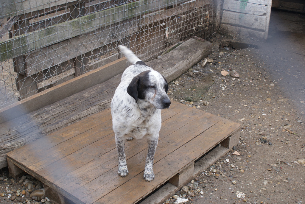 Um die Mittagszeit kam eine Familie aus Süddeutschland um ihren Hund Smokey persönlich abzuholen, den sie im Internet entdeckt hatten. Hier seht ihr Smokey ca. eine Stunde vor seiner Fahrt ins Glück in seinem Gehege.