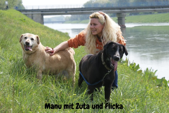 Manu und mein Frauchen waren am Vormittag wieder im Asyl, um mit ein paar Hunden spazieren zu gehen. Amalja gab ihnen Zuta (vermittelt) und Flika (vermittelt) zum Spazieren mit. Zuta war total aufgeregt und war nur am Schnüffeln. Endlich durfte sie wieder im Gras laufen und aus dem Nahe gelegenen Fluss trinken. Flika war auch total aufgeregt und freute sich über den Spaziergang. Sie war sehr verschmusst und anhänglich. Sie wollte aber lieber gestreichelt werden, als an den Fluß zu gehen. Beide Hundedamen sind völlig unkompliziert und wunderschön. Warum warten sie schon so lange im Tierheim auf ihre Familien???