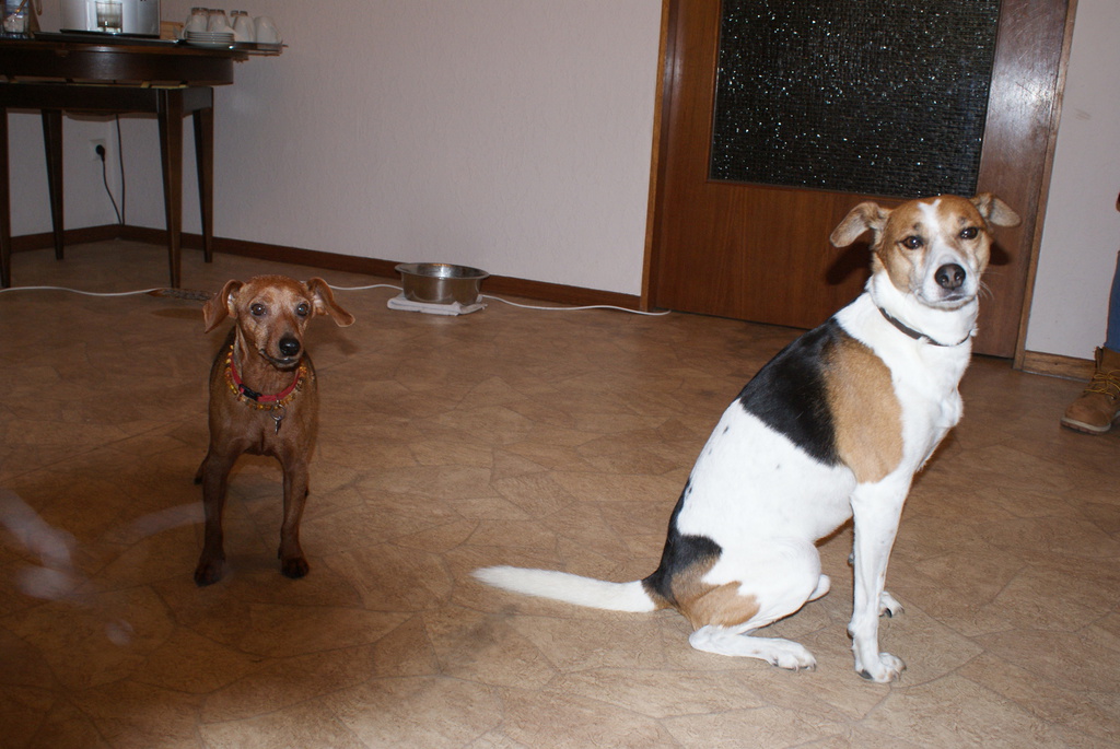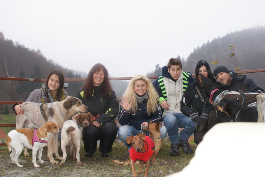 Außer Brutus (im roten Mäntelchen) und ich waren alle Hunde vom Tierschutz.
